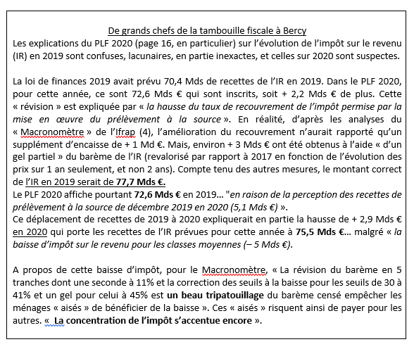 Le PLF 2020 n’indique précisément ni les niveaux des recettes ni ceux